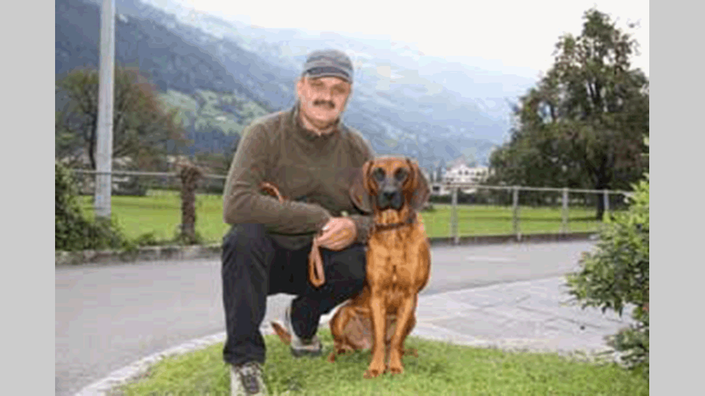 Einsatz während der JagdWird das eingespielte Duo in den nächsten Tagen für eine Nachsuche aufgeboten, fährt Walter Gisler mit «Arco» ins entsprechende Gebiet. Dort wird er den Jäger treffen, der Meldung erstattet hat. «Schweissarbeit ist Vertrauenssache», betont Walter Gisler. Deshalb sei es für ihn selbstverständlich, dass er den Namen des Jägers, der den Fehlschuss verursachte, strikte geheim hält. - Sobald der Hundeführer die entscheidenden Informationen über den Unfallhergang hat, gibt es für den Hundeführer nur noch eines: angeführt von «Arco» möglichst schnell das verletzte Tier erlösen zu können. Nach einer erfolgreichen Nachsuche wird ein genaues Nachsucheprotokoll erstellt, das wiederum an die Meldestelle zurückgeht. Gemäss Jagdstatistik musste im vergangenen Jahr zu 47 Nachsuchen aufgeboten werden. Rund 50 Prozent der Wildtiere konnten gefunden oder mittels Fangschuss erlegt werden. Wie klar Walter Gisler seine Leidenschaft als Jäger und die Aufgabe der Nachsuche trennt, beweist er, wenn er sagt: «In einem fremden Jagdgebiet würde ich während des Einsatzes als Schweisshundeführer nie auf ein gesundes Tier schiessen, selbst wenn ich den schönsten Gämsbock in Sichtweite hätte.» Schweisshund Arco stammt aus spezieller Zucht, deren Stammbaum entsprechend festgehalten ist. Die Lebenserwartung dieser «Hannoveraner» beträgt zehn bis zwölf Jahre. Dem erst 1 1/2-jährigen «Arco» stehen noch viele Nachsuchen bevor.