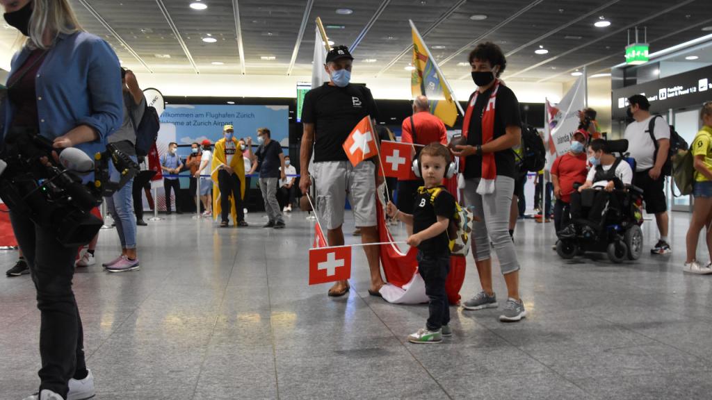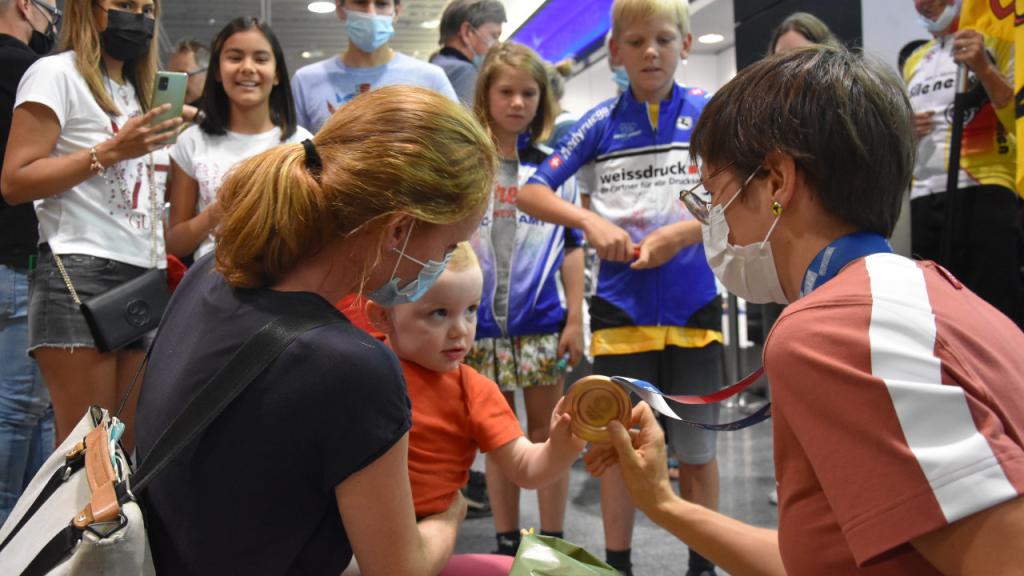 Bronzemedaillengewinnerin Linda Indergand wurde am Donnerstag, 29. Juli, von einer lautstarken Urner Delegation am Flughafen in Kloten abgeholt.