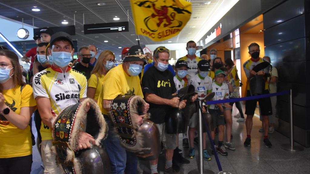 Das Urner Empfangskomitee am Flughafen liess sich sehen.