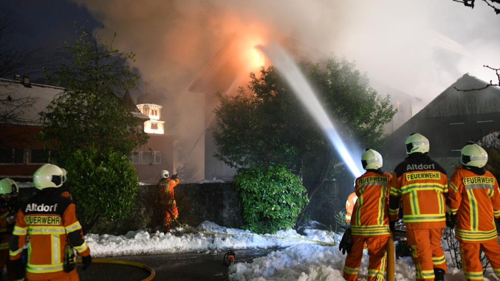 Am Donnerstagabend, 28. Januar, wurde kurz nach 20.00 Uhr aus dem Zentrum von Altdorf ein Gebäudebrand gemeldet. Beim Eintreffen der ersten Rettungskräfte konnte im Löwengässli ein Dreifamilienhaus in Vollbrand festgestellt werden. Zwei Personen wurden verletzt. Den umgehend ausgerückten Einsatzkräften gelang es, nach mehrstündigen intensiven Löscharbeiten, das Feuer unter Kontrolle zu bringen und so ein Übergreifen der Flammen auf umliegende Gebäude zu verhindern. Das Niederbrennen des Dreifamilienhauses konnte nicht verhindert werden. Nach wie vor befinden sich Einsatzkräfte der Feuerwehr Altdorf für eine Brandwache vor Ort.