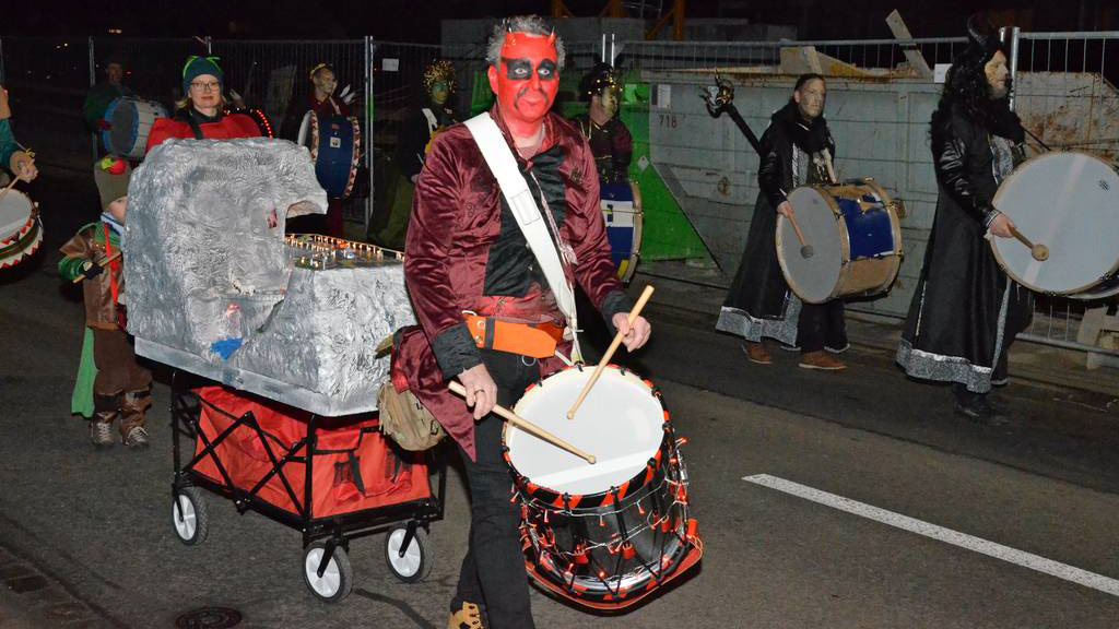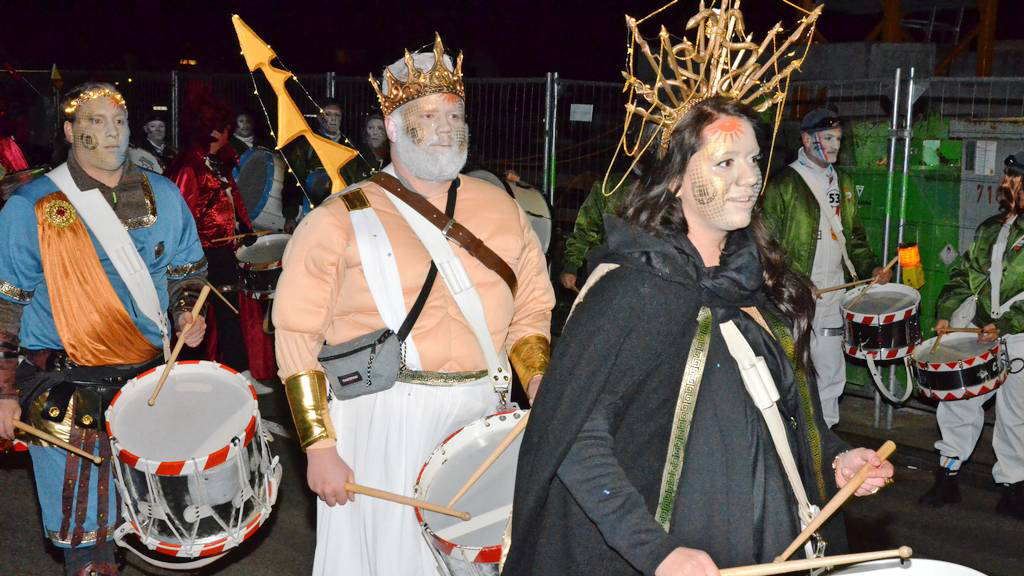 Legendär, mythisch und sagenhaft: So präsentierten sich die Mitglieder der Katzenmusikgesellschaft Schattdorf beim Eintrommeln am Mittwochabend.