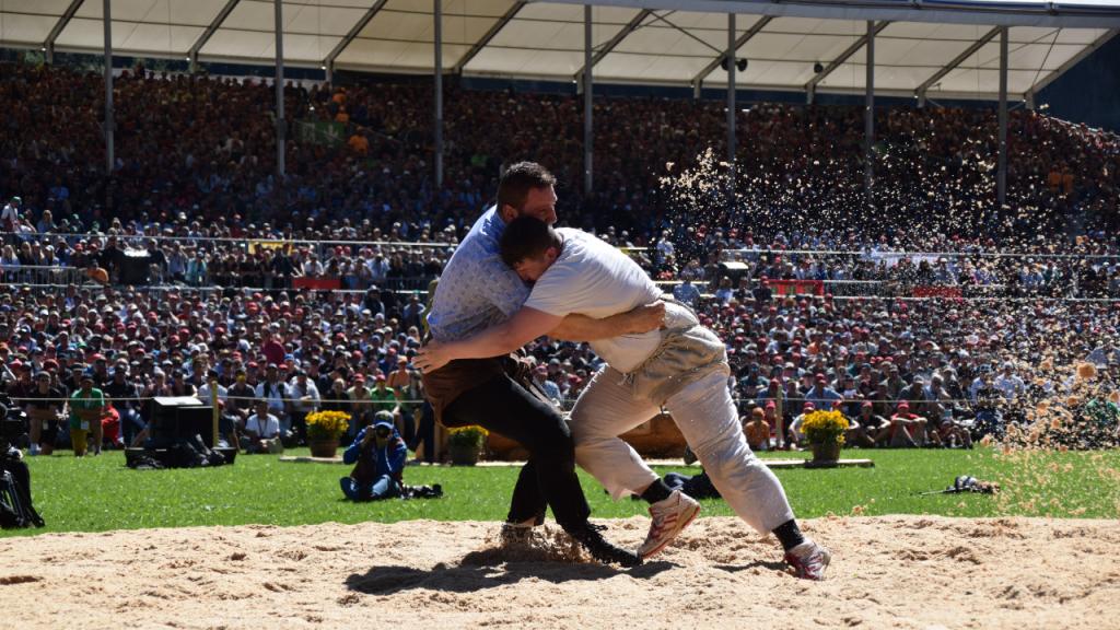 Michael Zurfluh (rechts) im 8. Gang gegen den Eidgenossen Marcel Räbsamen.