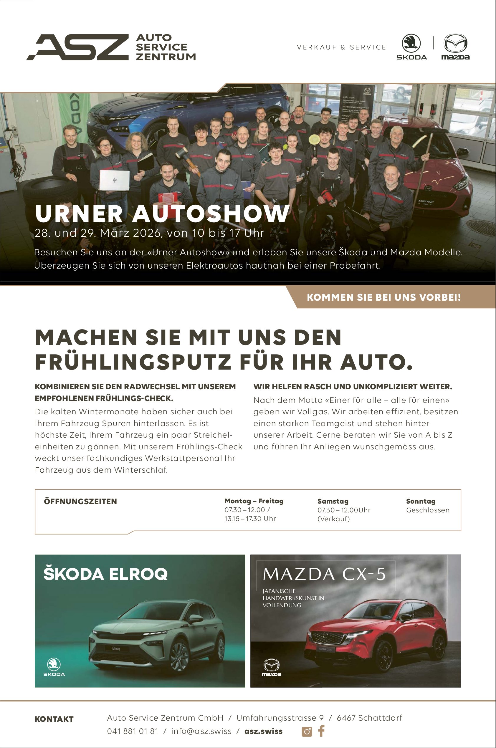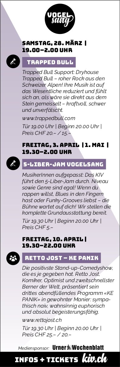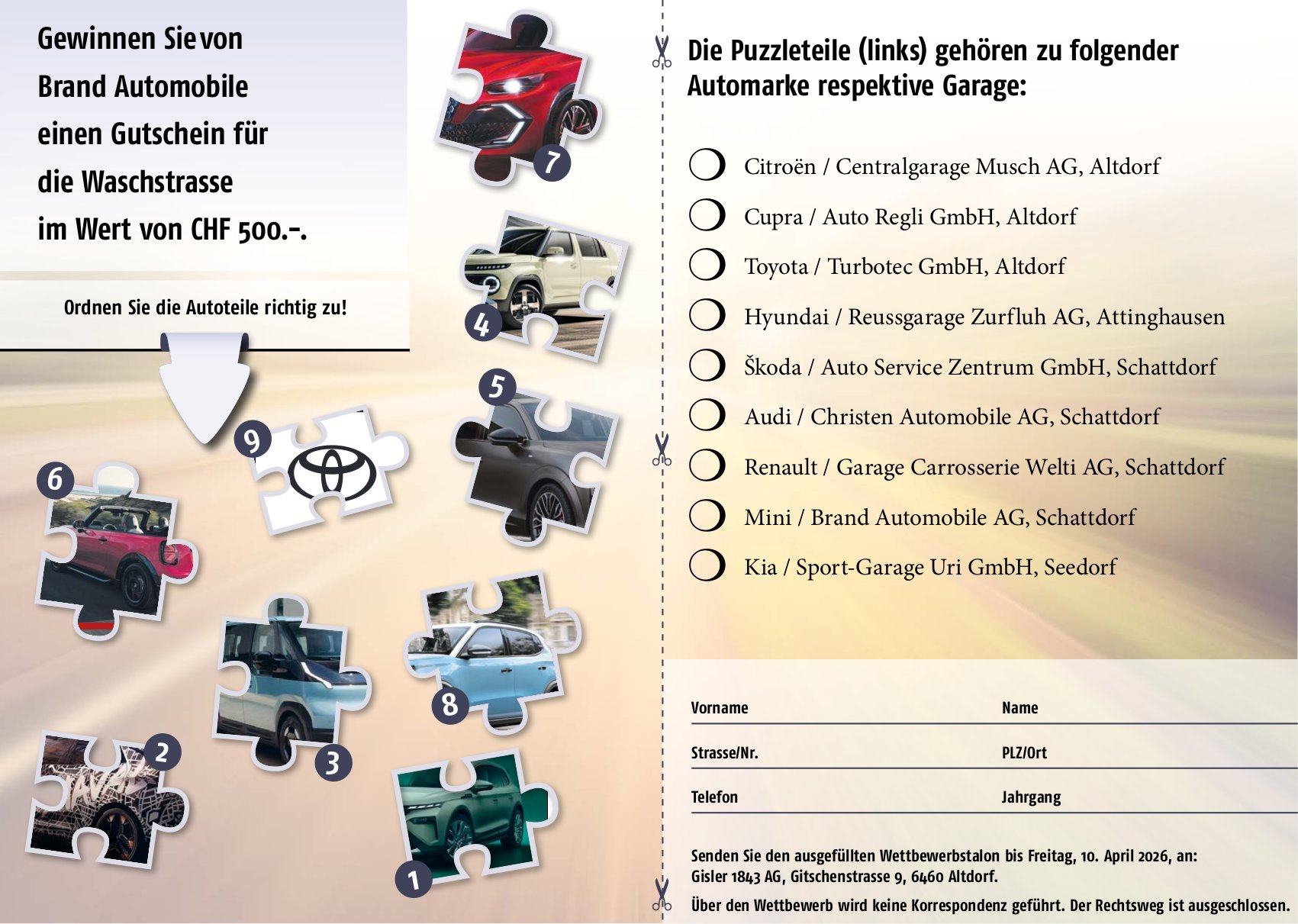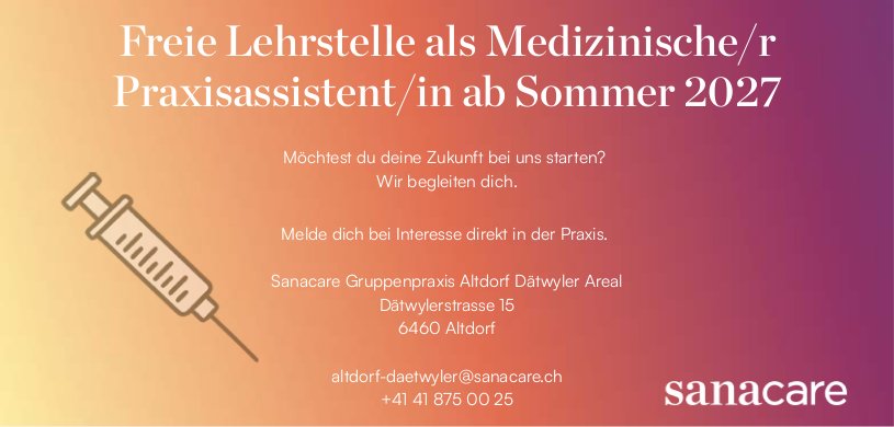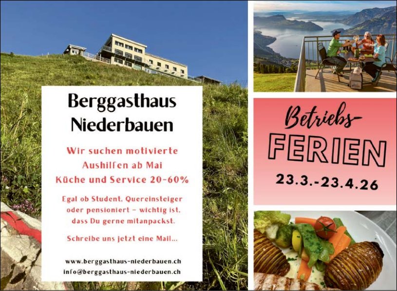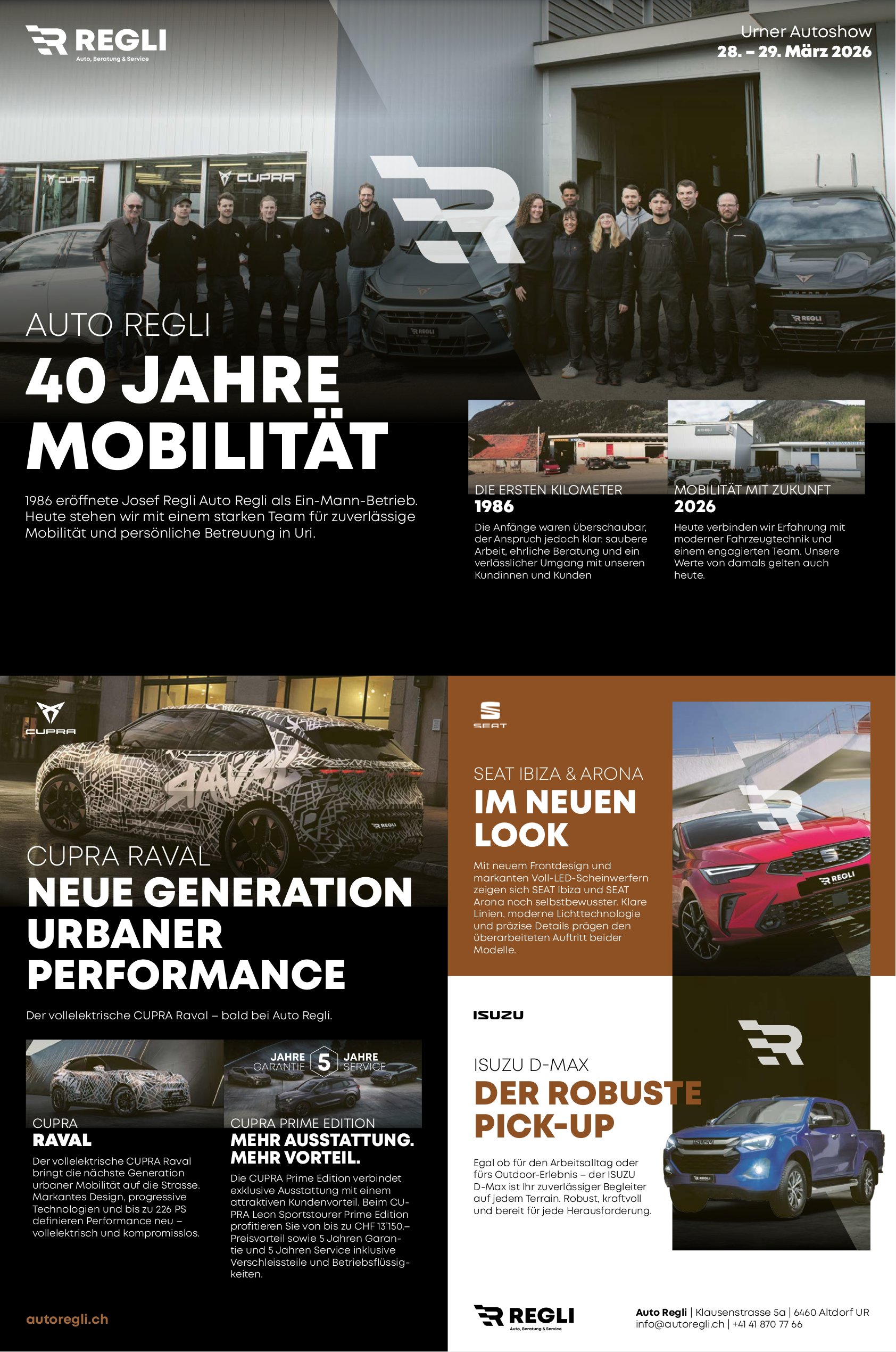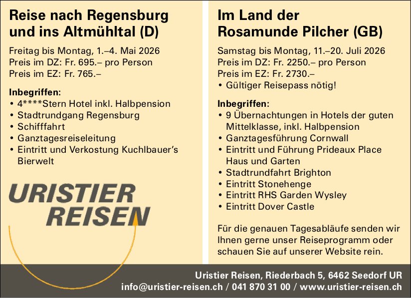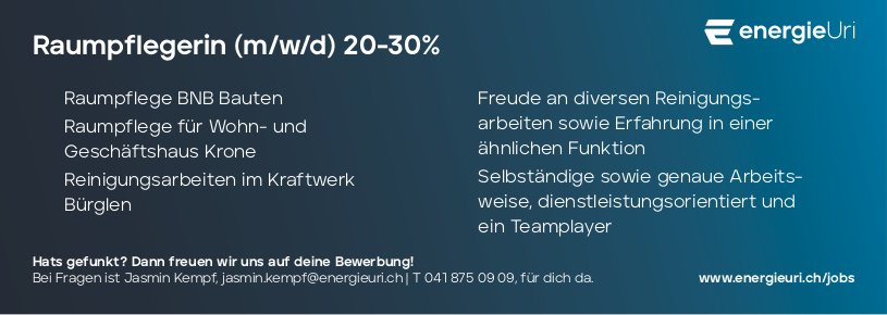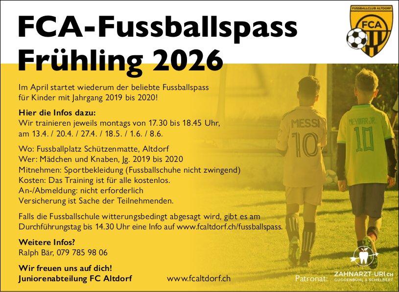 Die Einträge des Veranstaltungskalenders erscheinen im «Urner Wochenblatt» und im Gratisanzeiger «Uristier» sowie online auf urnerwochenblatt.ch und uristier.ch.