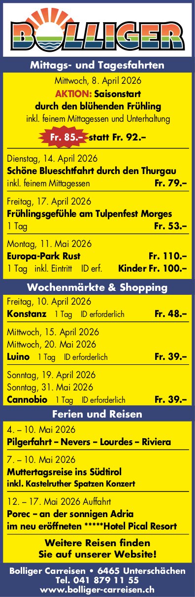 Der Veranstaltungskalender für Uri finden Sie gedruckt im «Urner Wochenblatt» und im Gratisanzeiger «Uristier» sowie online auf www.urnerwochenblatt.ch. Dort können Sie auch gleich selbst Ihre Veranstaltung eintragen. Mit Ihrem Eintrag im Veranstaltungskalender erreichen Sie ein breites Publikum im Kanton Uri und machen auf Ihre Veranstaltung aufmerksam.