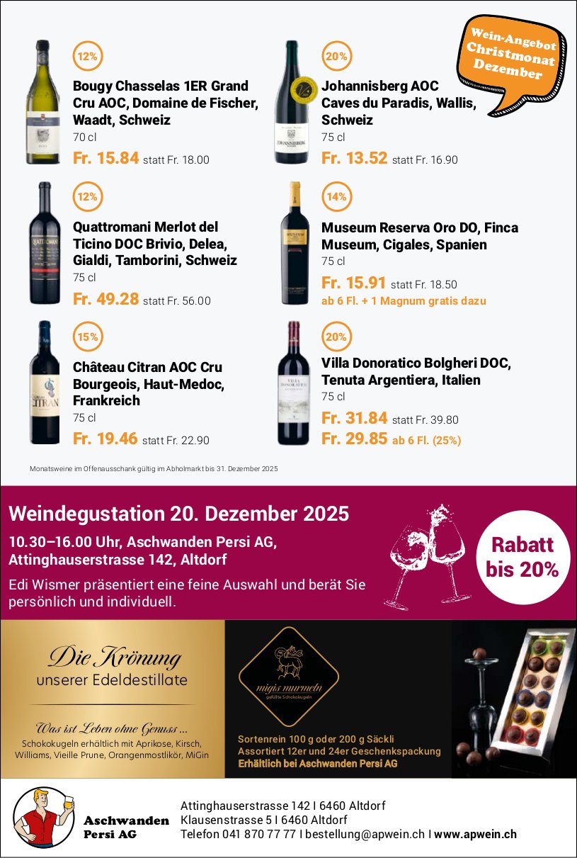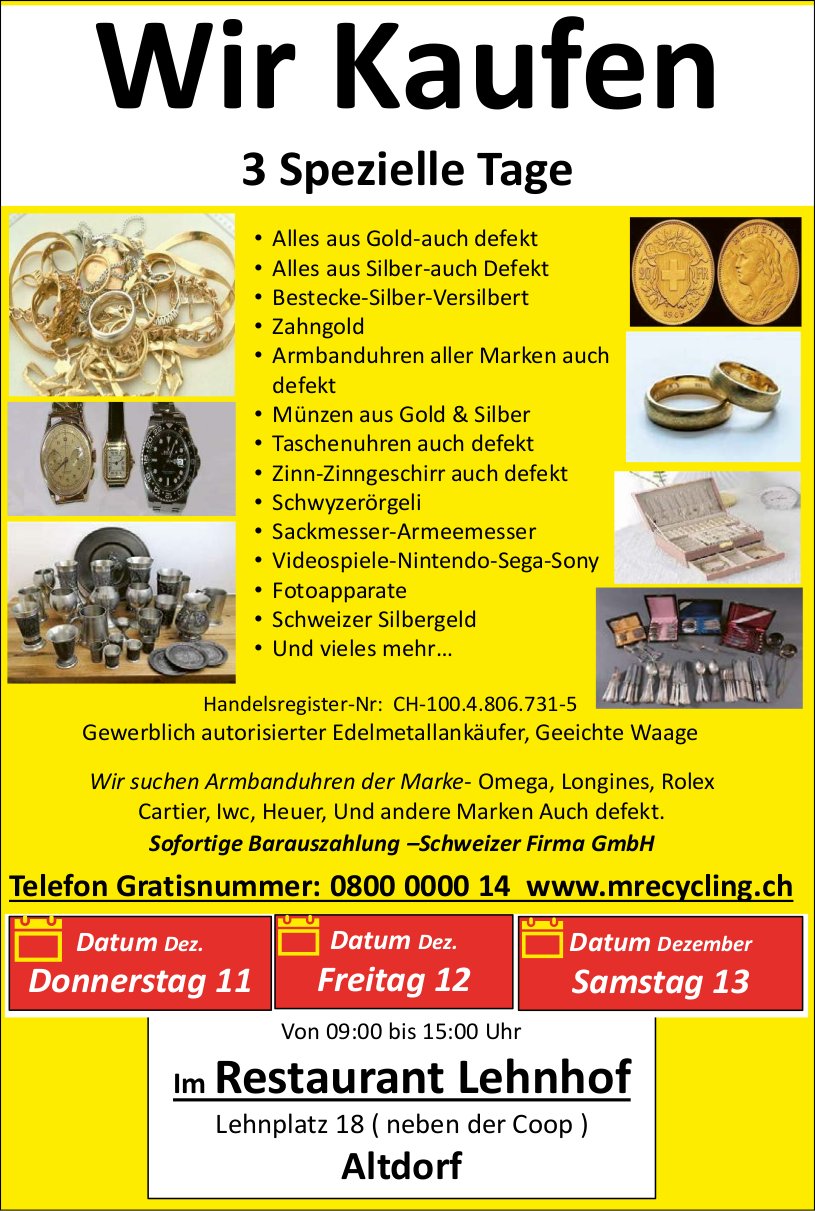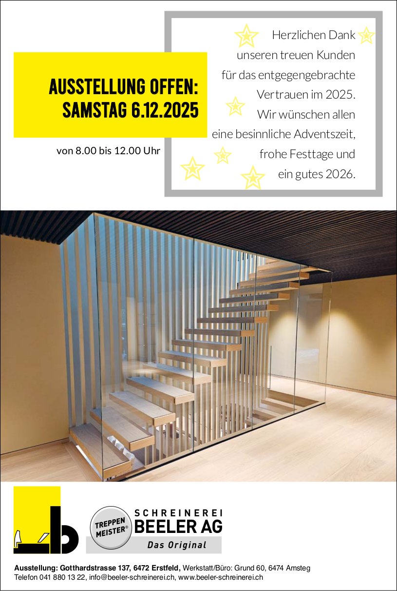 Samstag, 03. Jan. 9.00–15.30 Uhr, Rossgiessenstrasse 10, Schattdorf