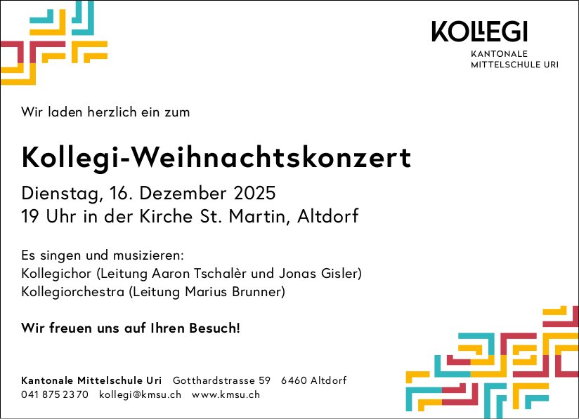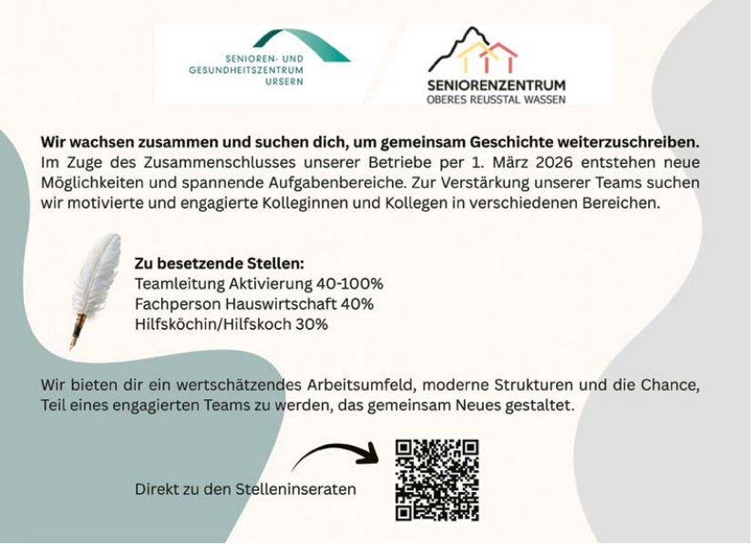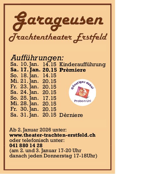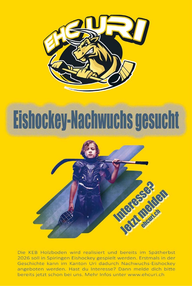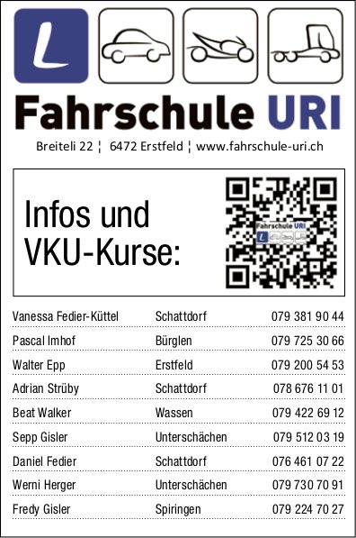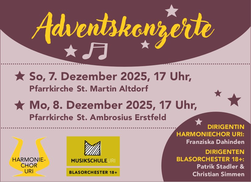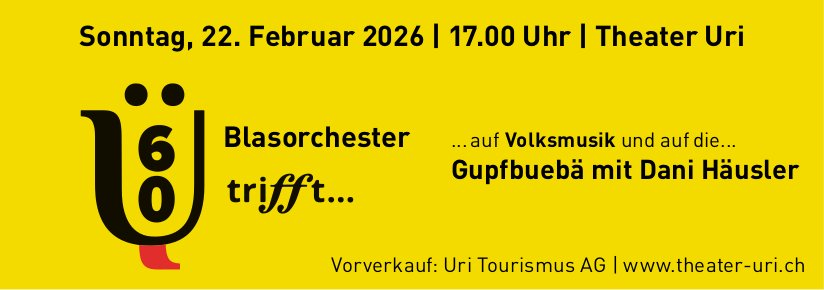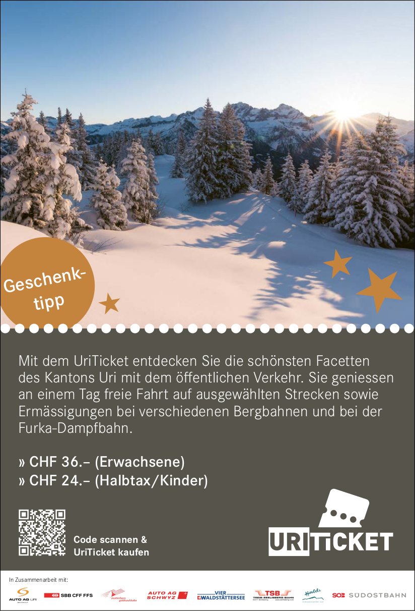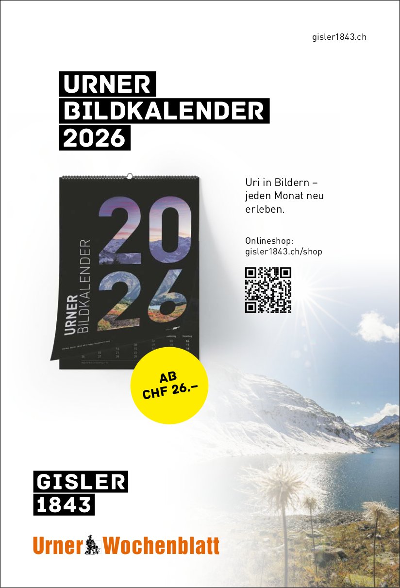 Die Einträge des Veranstaltungskalenders erscheinen im «Urner Wochenblatt» und im Gratisanzeiger «Uristier» sowie online auf urnerwochenblatt.ch und uristier.ch.