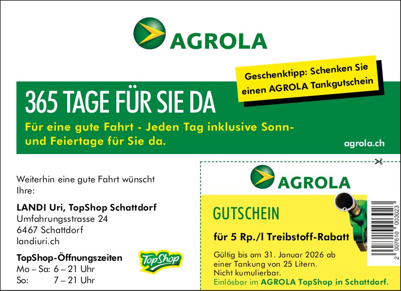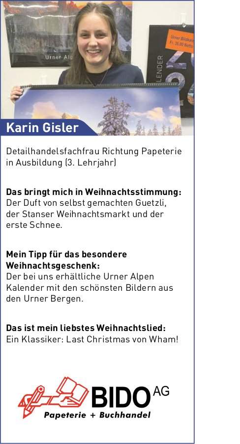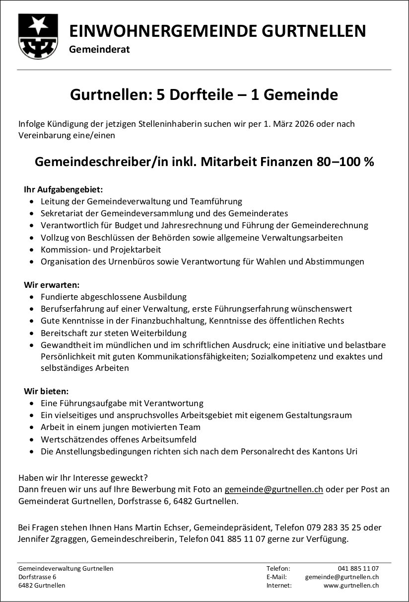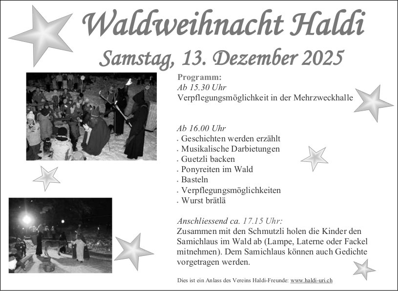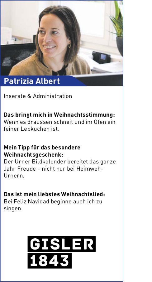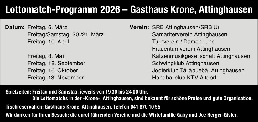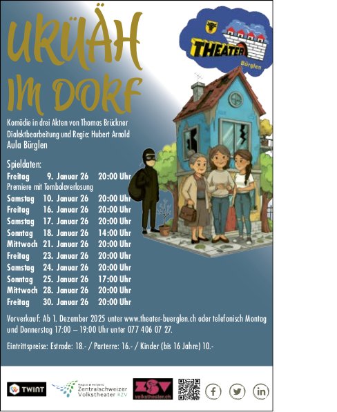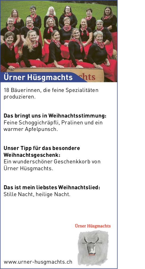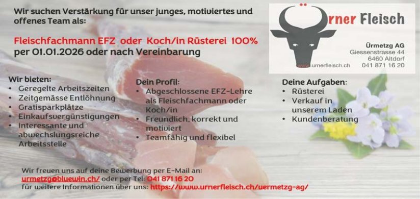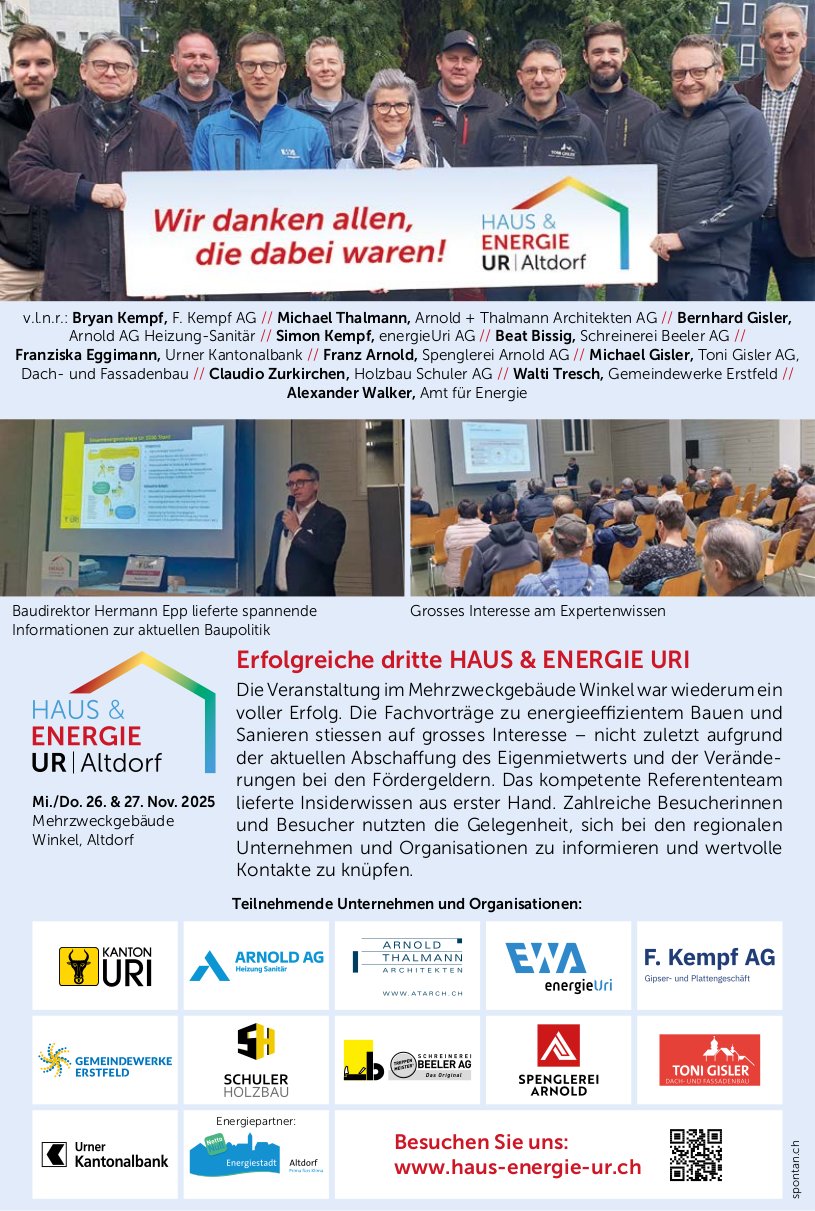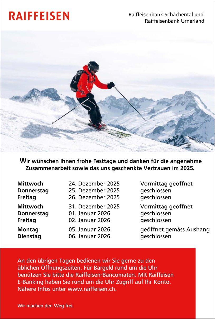 Die Einträge des Veranstaltungskalenders erscheinen im «Urner Wochenblatt» und im Gratisanzeiger «Uristier» sowie online auf urnerwochenblatt.ch und uristier.ch.